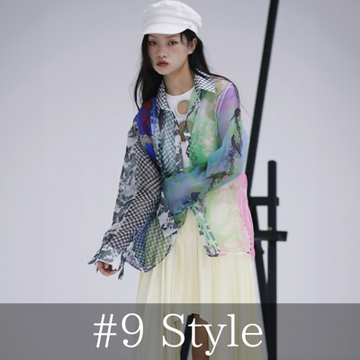 ー Style#6 ー▶ 同じスタイルの商品一覧はこちら ー Description ーアートを思わせるプリントを全体に施したブラウス。薄手の生地が生む軽やかな透け感とゆるやかなフォルムが、女性らしいしなやかさを引き立てる。襟とカフスはシャープなラインで構築され、華やかな柄をモードに引き締めるバランス。自然光を受けてわずかに艶めく質感が、スタイリングに奥行きを添える。 ー Model ー身長:162cm着用サイズ:M ー Material ーポリエステル ー Seasonal feeling ー春◎・夏〇・秋◎・冬〇ー 発送予定日 ーお届け日数は、通常『ご入金確認日』から『2週間~4週間前後』となります。ご注文から発送までの詳細はショッピングガイドをご確認下さい。
