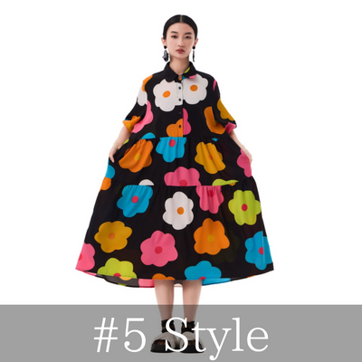 ー Artifact Line ー上質な素材と構築の精度で魅せる、デザインを強調した唯一性を貫くコレクション。▶ 同じスタイルの商品一覧はこちら ー Description ー繊細な山水画を思わせる風景プリントを全面に施したフレアドレス。前面から背面にかけて広がるアートのような構図が印象的で、動くたびに異なる景色が現れる。肩から流れるように重ねられたケープ風フリルが立体的な陰影を生み、袖口のカフスが全体を引き締める。フロントはボタン開閉式で、軽やかに揺れるフルレングスのフォルムが優雅な印象を与える。 ー Model ー身長:162cm着用サイズ:M ー Material ーコットン,ポリエステル ー Seasonal feeling ー春◎・夏△・秋◎・冬〇ー 発送予定日 ー・お届け日数は、通常『ご入金確認日』から『2週間~4週間前後』となります。・ご注文から発送までの詳細はショッピングガイドをご確認下さい。